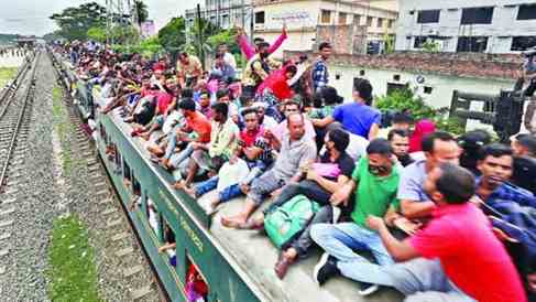 ঢাকা রেলওয়ে বিভাগীয় ব্যবস্থাপক (ডিআরএম) শফিকুল ইসলাম যুগান্তরকে জানান, ‘এবারের ঈদযাত্রার চিত্রটা ভিন্ন। আমরা প্রায় ৮৯ শতাংশ ট্রেন যথাসময়ে ছাড়তে পারছি। তা ছাড়া যাত্রীদের সুবিধার্থে শুধুমাত্র যাত্রার দিন আন্তঃনগর ট্রেনে ২০ শতাংশ আসনবিহীন টিকিট বিক্রি করছি। যাত্রীরা অনেক সচেতন হয়েছেন। প্রায় সবাই টিকিট কেটে ট্রেন ভ্রমণ করছেন। প্রতিটি ট্রেনে যাত্রী ঠাসাঠাসি হলেও নিজেরা (যাত্রী) বিষয়টিকে স্বাভাবিকভাবে দেখছের। এমনও যাত্রী রয়েছেন, দু’সিটে ভাগাভাগি করে তিন যাত্রী যাচ্ছেন। আমরা অতিরিক্ত বগি লাগিয়েছি। একই সঙ্গে বিভিন্ন সেকশনে অতিরিক্ত ইঞ্জিন, উদ্ধারকারী গাড়ি প্রস্তুত রেখেছি। একসময় ট্রেনের ছাদ এবং ইঞ্জিনে জীবনের ঝুঁকি নিয়ে যাত্রীরা চলতেন, এখন তা খুব একটা দেখা যায় না।