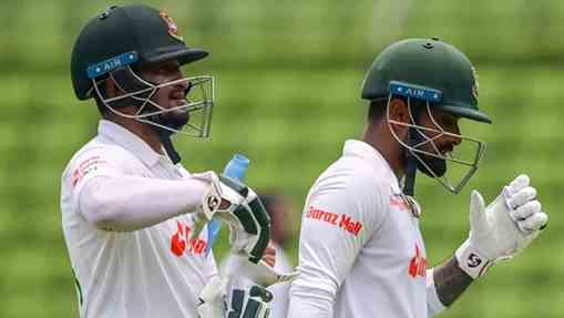 এ প্রতিবেদন লেখার সময় বাংলাদেশের রান ৭ উইকেটে ১৬৮। লিড মোটে ২৭ রানের। ব্যাট হাতে লড়াই করছেন মোসাদ্দেক হোসেন সৈকত ও তাইজুল ইসলাম।