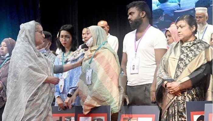 অনুষ্ঠানের শুরুতে প্রধানমন্ত্রী নিহতদের স্বজন এবং আহতদের সঙ্গে কুশল বিনিময় করেন। তাদের খোঁজ খবর নেন।