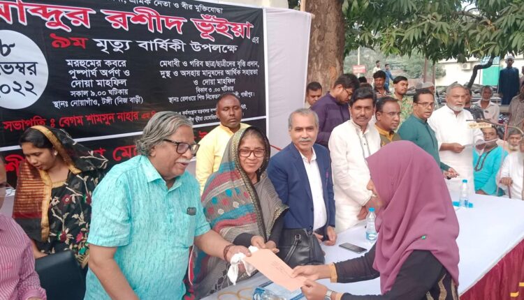 গাজীপুর টঙ্গীর সৎ নির্ভীক জনদরদী শ্রমিকনেতা বীর মুক্তিযোদ্ধা আবদুর রশিদ ভূঁইয়ার ৯ম মৃত্যুবার্ষিকী উপলক্ষে স্মরণসভা ও দোয়া মাহফিল অনুষ্ঠিত হয়েছে। মঙ্গলবার সকালে টঙ্গীর নোয়াগাঁও তার কবরে ফুল দিয়ে শ্রদ্ধা নিবেদন, দোয়া মাহফিল ও বিকালে রেলওয়ে শিশু নিকেতন প্রাঙ্গণে মেধাবী ও গরীব ছাত্র-ছাত্রীদের মাঝে বৃত্তি প্রদান,দুস্থ ও অসহায় মানুষের আর্থিক সহায়তা, দোয়া মাহফিল স্মরণসভা অনুষ্ঠিত হয়। আব্দুর রশিদ ভূঁইয়া মেমোরিয়াল ট্রাস্টের সভাপতি ও সংরক্ষিত মহিলা সংসদ সদস্য বেগম শামসুন্নাহার ভূঁইয়ার সভাপতিত্বে এবং ট্রাস্টের সাধারণ সম্পাদক গাজীপুর মহানগর আওয়ামী লীগের বিজ্ঞান ও প্রযুক্তি বিষয়ক সম্পাদক আলহাজ্ব মোঃ শহীদ উল্লা মিয়ার পরিচালনায় অনুষ্ঠিত হয়েছে। স্মরণসভা ও দোয়া মাহফিলে বক্তব্য রাখেন তৃণমূল জনতা পার্টির চেয়ারম্যান বীর মুক্তিযোদ্ধা ডাঃ নাজিম উদ্দিন আহমেদ,মুক্তিযোদ্ধা সুলতান আহমেদ শরীফ, ডাঃ জালাল, শেকানুল ইসলাম শাহি, ছাত্রলীগ নেতা রাজীব হায়দার, সাদিম,,মনিরুজ্জামান মাষ্টার, কাউন্সলর হামিদা আক্তা্র, ও বিনু বারেক,কবির আহমেদ মন্ডল,জোলেখা আক্তার ঝুমুর,প্রমুখ। বক্তারা বলেন আব্দুর রশিদ ভূঁইয়া ছিলেন প্রকৃত দেশপ্রেমিক। তিনি একজন নিষ্ঠাবান নেতা। একজন আদর্শবান রাজনীতিক, সাহসী শ্রমিক সংগঠক, অকুতভয় একজন সাহসী মুক্তিযোদ্ধাও ছিলেন তিনি। মুক্তিযুদ্ধের অন্যতম সংগঠক এবং একজন প্রকৃত নিঃস্বার্থ সমাজসেবক হিসেবে রশিদ ভূঁইয়া আমৃত্যু গণমানুষের পাশে ছিলেন। বীরমুক্তিযুদ্ধা আব্দুর রশিদ ভূঁইয়া ছিলেন নিখাঁদ আপোষহীন আদর্শবান একজন রাজনীতিবিদ। সকল লোভ লালসাকে তিনি জয় করে গণমানুষের নেতায় পরিণত হয়েছিলেন। পরে আব্দুর রশিদ ভূঁইয়া মেমোরিয়াল ট্রাষ্টের পক্ষ থেকে মেধাবী ও গরীব ছাত্র-ছাত্রীদের বৃত্তি প্রদান দুস্থ ও অসহায় মানুষের আর্থিক সহায়তা প্রদান করা হয় ও আব্দুর রশিদ সহ দেশ ও জাতির, মঙ্গল কামনা করে দোয়া করা হয়।