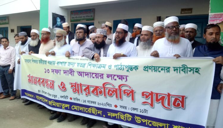 ১৩দফা দাবিতে মাদ্রাসা শিক্ষকদের মানববন্ধন