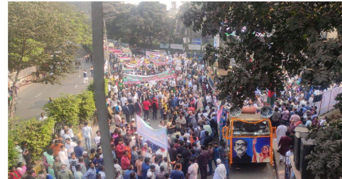 শোভাযাত্রায় যোগ দিয়েছেন আওয়ামী লীগের বিপুল সংখ্যক নেতাকর্মী। লাল-সবুজ পোশাক পরে তারা ইঞ্জিনিয়ার্স ইনস্টিটিউশন ও এর আশপাশের জড়ো হয়ে থেকে কর্মসূচি শুরু করেন। ডাকঢোল পিটিয়ে, বাদ্যযন্ত্র বাজিয়ে তাদের অগ্রসর হতে দেখা যায়।