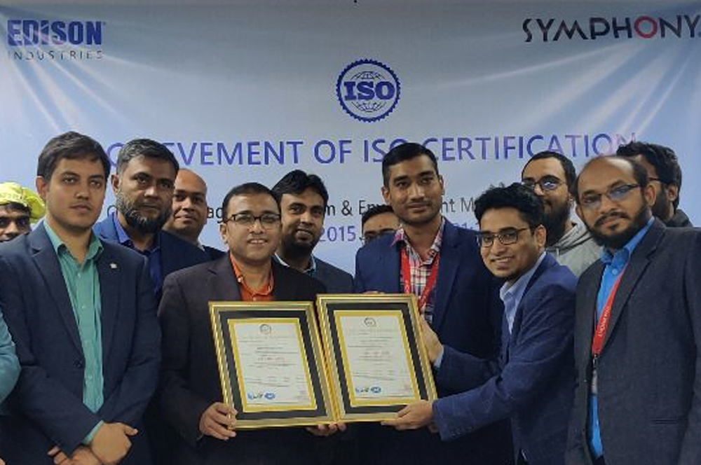 বাংলাদেশের সর্বাধিক বিক্রিত হ্যান্ডসেট ব্র্যান্ড সিম্ফনি মোবাইলের ফ্যাক্টরি এডিসন ইন্ডাস্ট্রিজ লিমিটেড কোয়ালিটি ম্যানেজম্যান্ট এবং এনভায়রনম্যান্ট ম্যানেজম্যান্ট এর জন্য আন্তর্জাতিকভাবে স্বীকৃত আই এস ও ৯০০১ : ২০১৫ (ISO9001:2015) এবং আই এস ও ১৪০০১: ২০১৫ (ISO14001:2015) সনদ অর্জন করেছে।