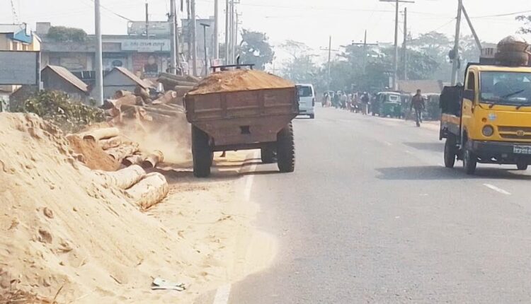 সরাইলে ইট বালু ব্যবসায়ীদের দখলে সড়ক ও মহাসড়ক