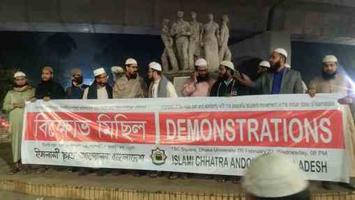 ভারতের কর্ণাটক রাজ্যে শিক্ষার্থীদের শান্তিপূর্ণ আন্দোলনের সঙ্গে সংহতি ও হিজাব নিষিদ্ধের প্রতিবাদে ঢাকা বিশ্ববিদ্যালয়ে বিক্ষোভ মিছিল হয়েছে।